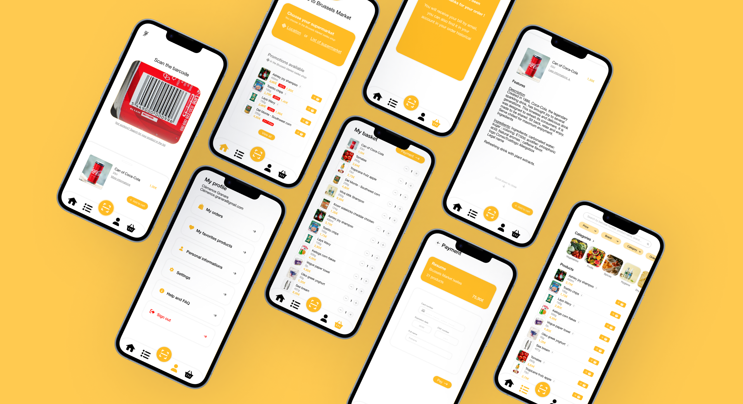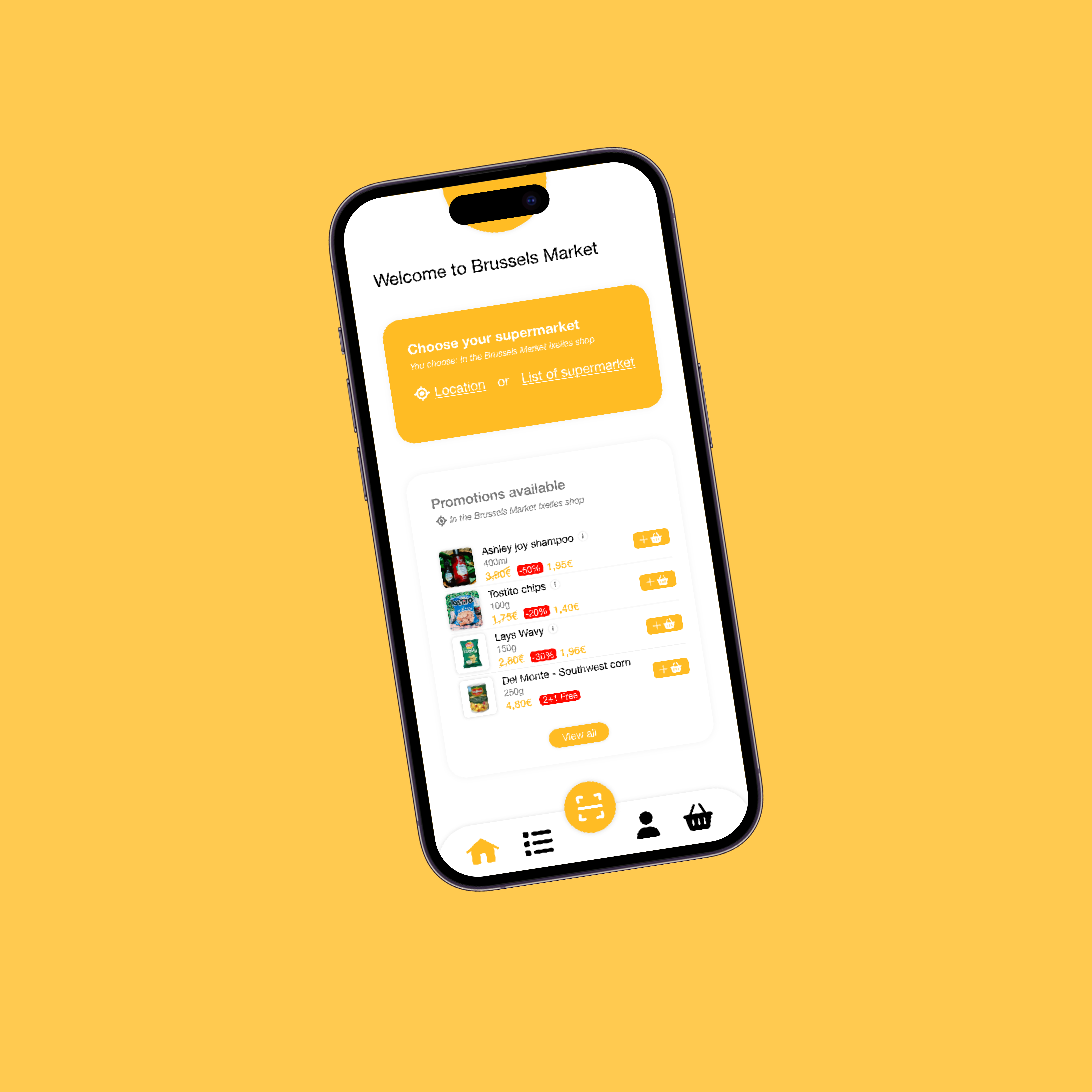 The Brussels Market app is an application that allows you to scan your products while shopping, in order to save time when paying and to have better visibility on the amount of your basket.
